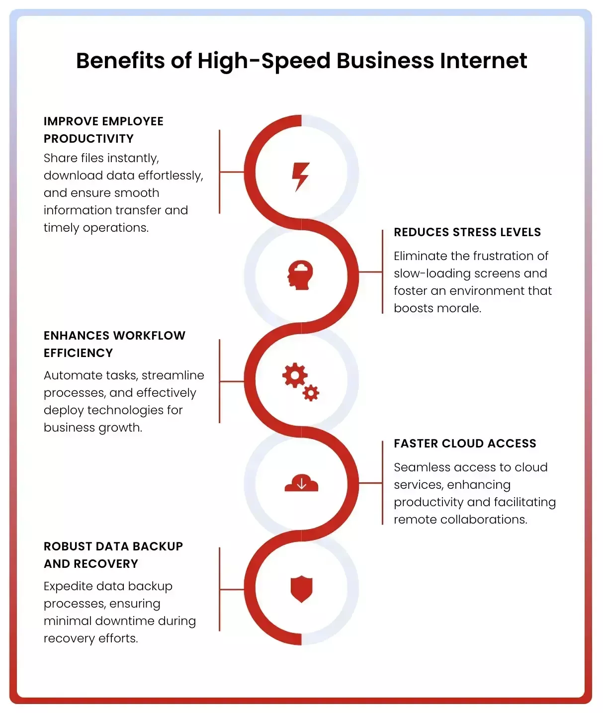 Using the internet should make lives easier, not harder. Investing in high-speed business internet eliminates the frustration stemming from sluggish connections, creating an environment that boosts morale and fosters a successful business.